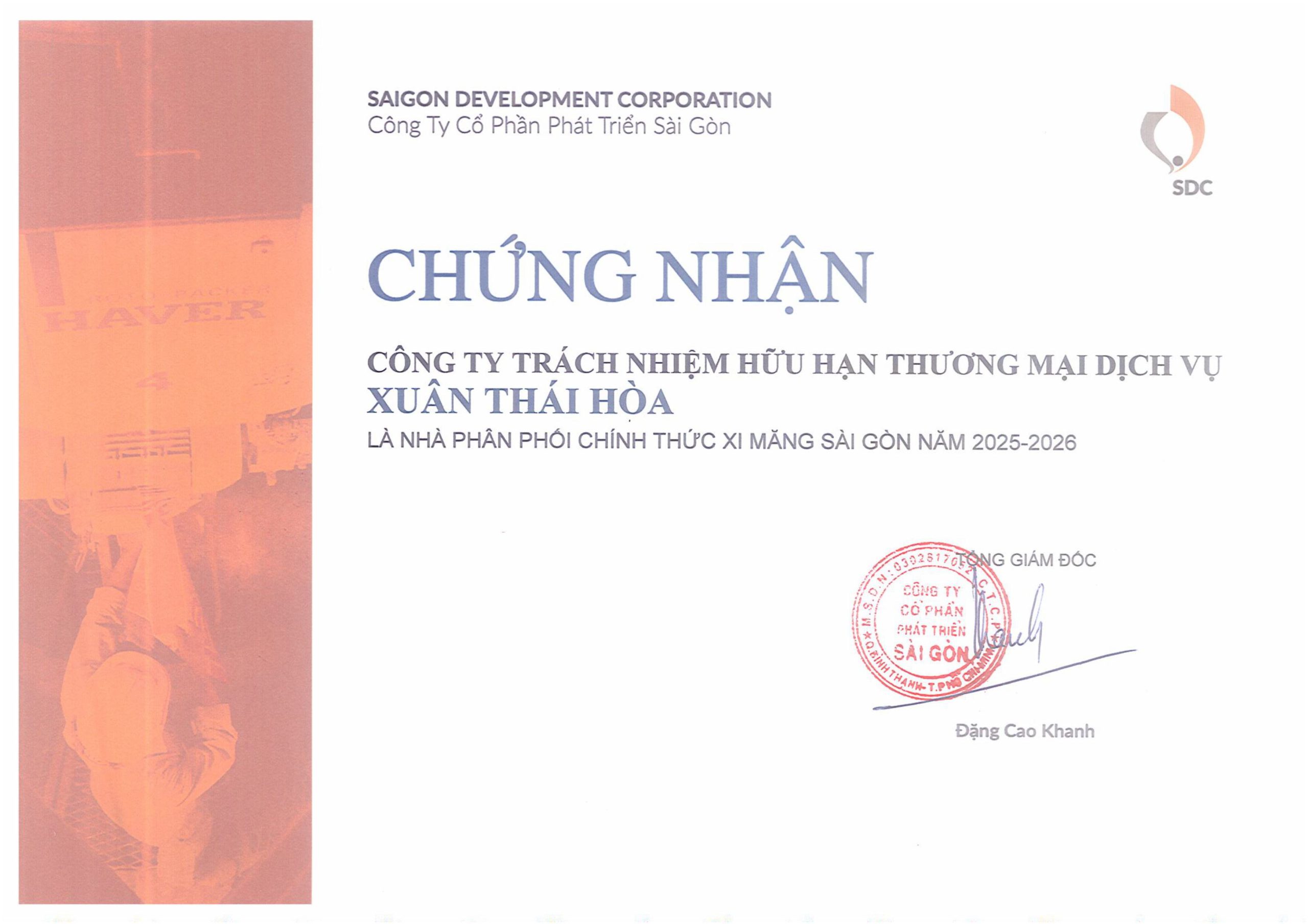 CHỨNG NHẬN NHÀ PHÂN PHỐI XI MĂNG SÀI GÒN